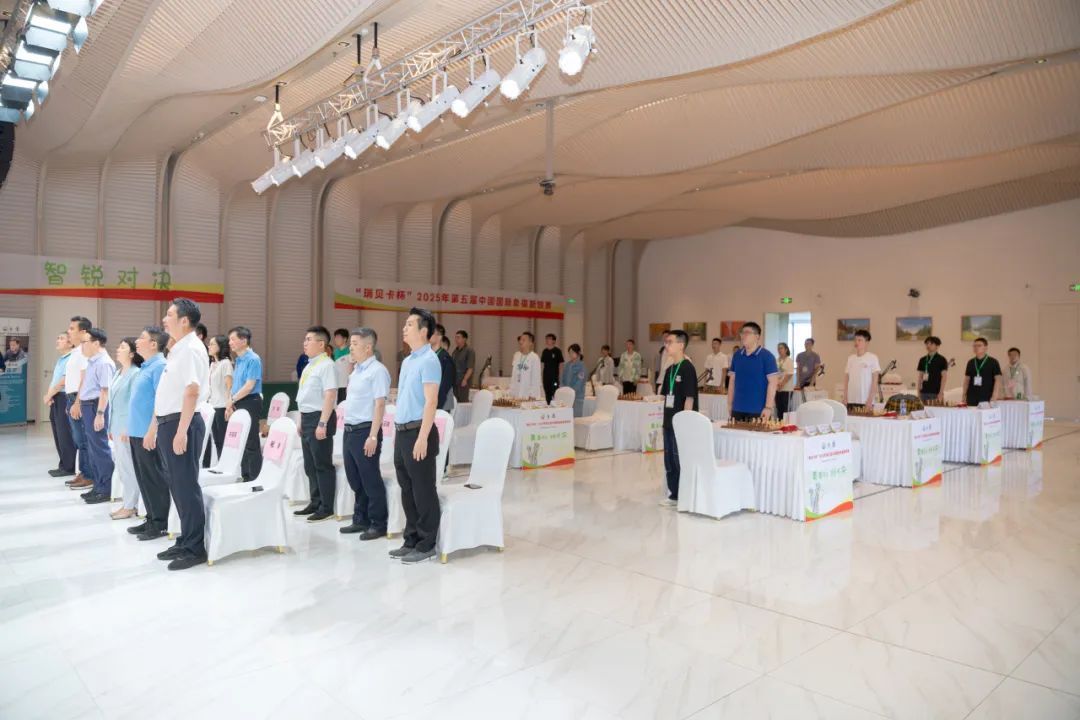 开幕式在庄严的国歌声中拉开帷幕。原中国国际象棋协会副主席董伟,国家体育总局棋牌运动管理中心国际象棋部主任田红卫,江苏省棋牌运动管理中心主任、江苏棋院院长朱晓军,江苏省棋类运动协会会长杨伊明,东台黄海海滨国家森林公园管理中心党委书记、主任崔静,中国国际象棋协会副会长徐俊,江苏省棋牌运动管理中心副主任、江苏棋院副院长伍霞,中国国际象棋协会副秘书长周影,江苏百工造物科技有限公司董事长马聪等嘉宾出席了开幕式。