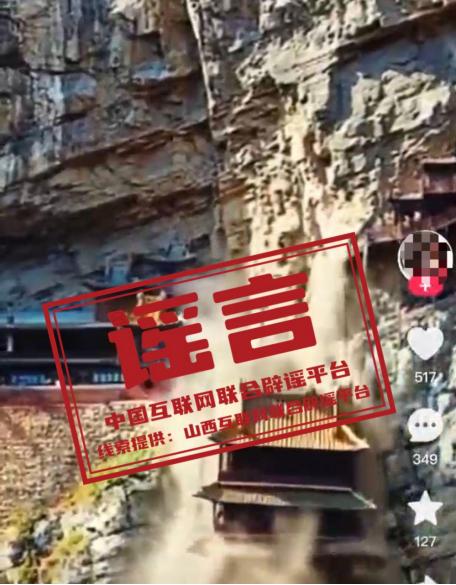 谣 言 山西大同悬空寺部分建筑物坍塌?