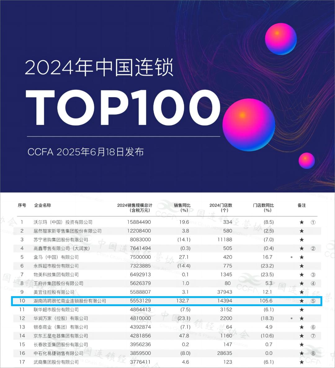 2024年中国连锁百强名单公布,雨花这家企业跻身前十……