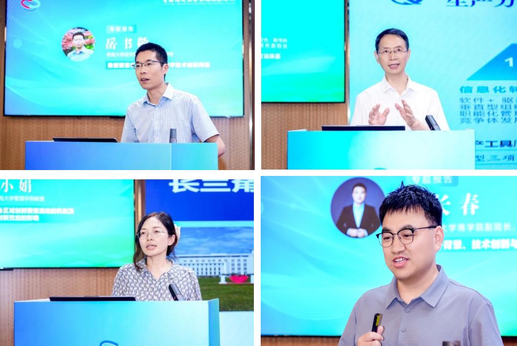 围绕数据、技术等核心要素的高效配置与价值释放展开。东南大学岳书敬教授以“数据要素市场化与城市数字技术创新网络”为核心,解析数据要素对城市创新网络的激活作用;江苏省数字经济联合会卜安洵秘书长提出“企业AI转型365方法体系”,为企业数字化提供可操作路径;南京邮电大学洪小娟教授通过实证研究揭示长三角区域创新要素流动机制及其对创新效应的影响;江苏开放大学朱长春副教授则从微观视角切入,探讨“CEO海外背景”这一特殊要素如何驱动企业技术创新与数字化转型。