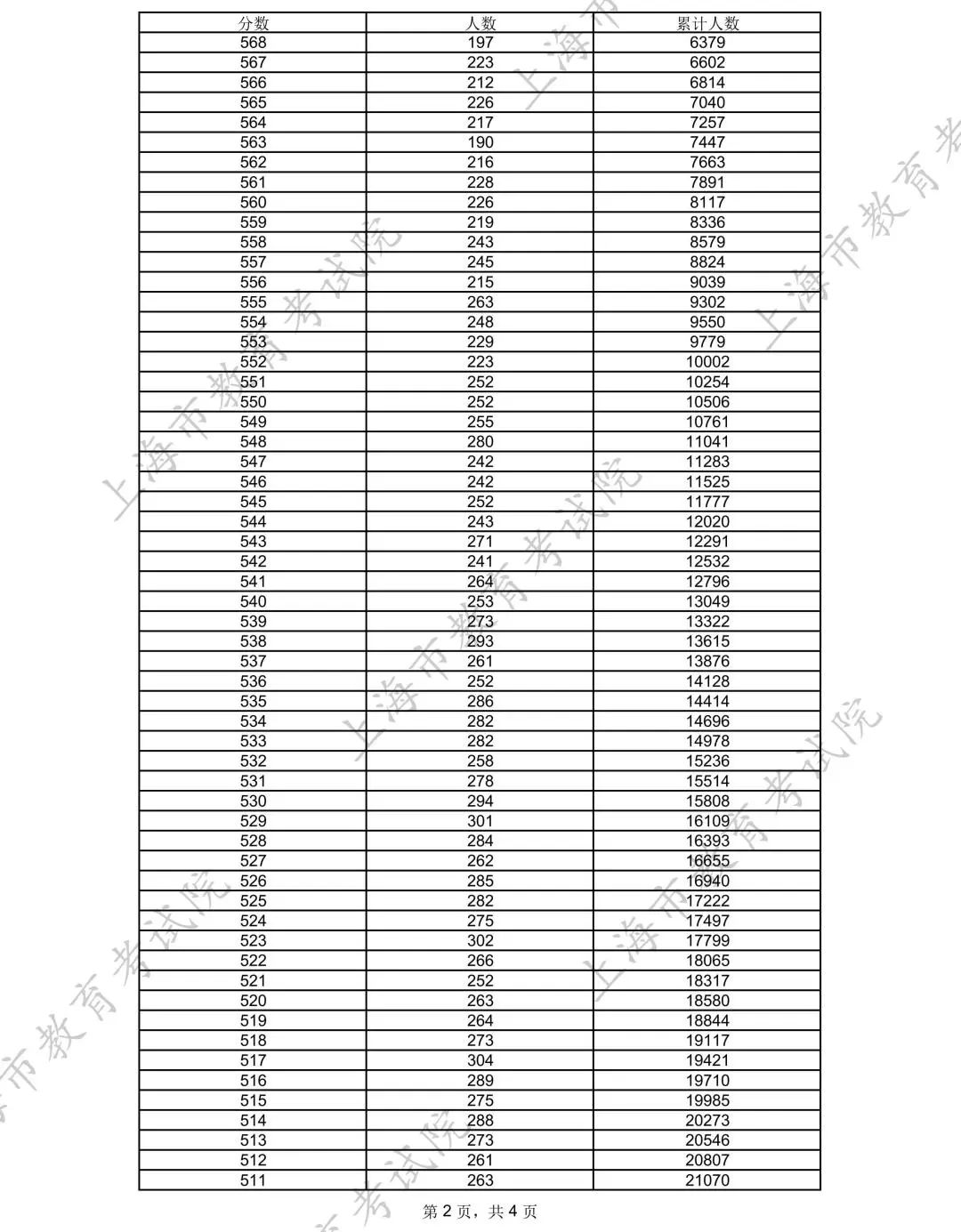 附:上海2025年高考各类别考生成绩分布表
