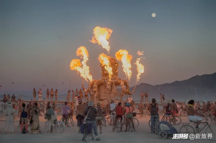 仪式化设计强化情感共振。活动以焚烧巨型木质人像和神庙作为最终高潮,这一仪式已成为火人节最具象征意义的文化图腾。艺术装置“短暂即永恒”的特性,与闭幕焚烧仪式形成呼应,既赋予创作稀缺价值,又通过集体见证象征重生与告别。这种充满象征意义的仪式设计,将个体体验升华为群体情感共鸣,增强活动的文化感染力和凝聚力。