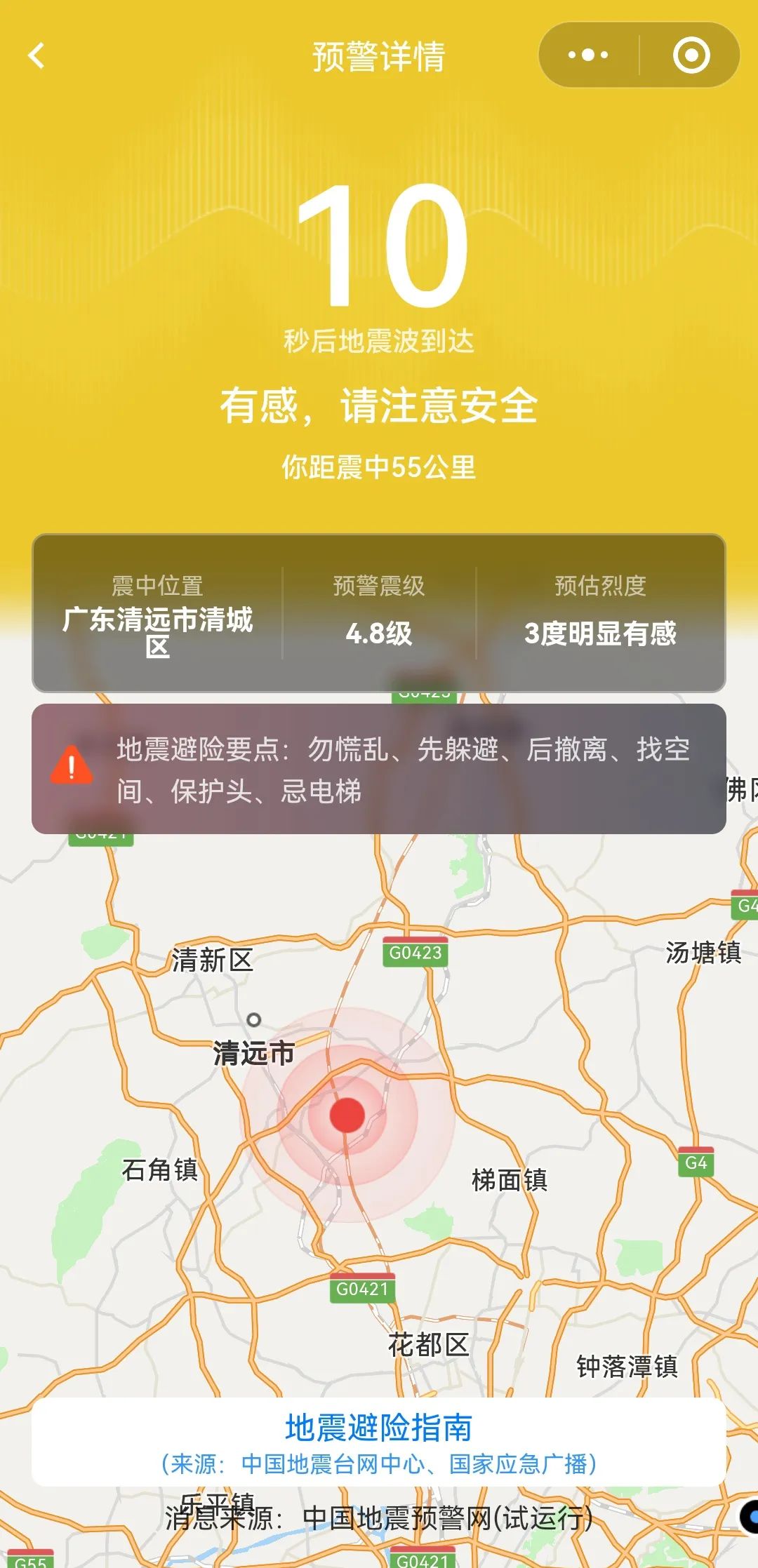 本次清远地震发生后5.3秒就发出预警,广州等地的居民最快提前30秒收到了警报,真系好劲啊!