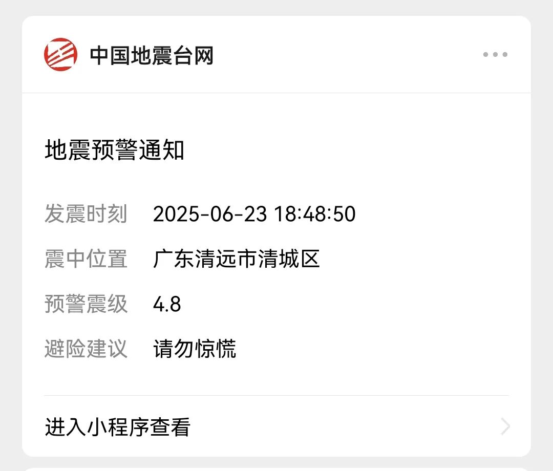 6月23号 清远市清城区发生4.3级地震