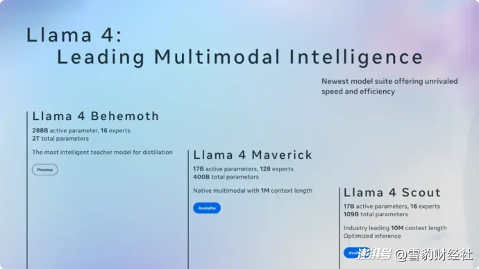 Llama 4的发布计划中包含Behemoth、Maverick和Scout三款模型 图源:Meta