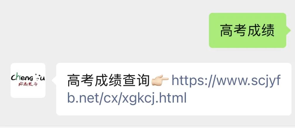 2、在“成都发布”微信公众号主页面回复关键词“高考成绩”,届时系统将自动回复2025年度四川高考成绩查询链接;