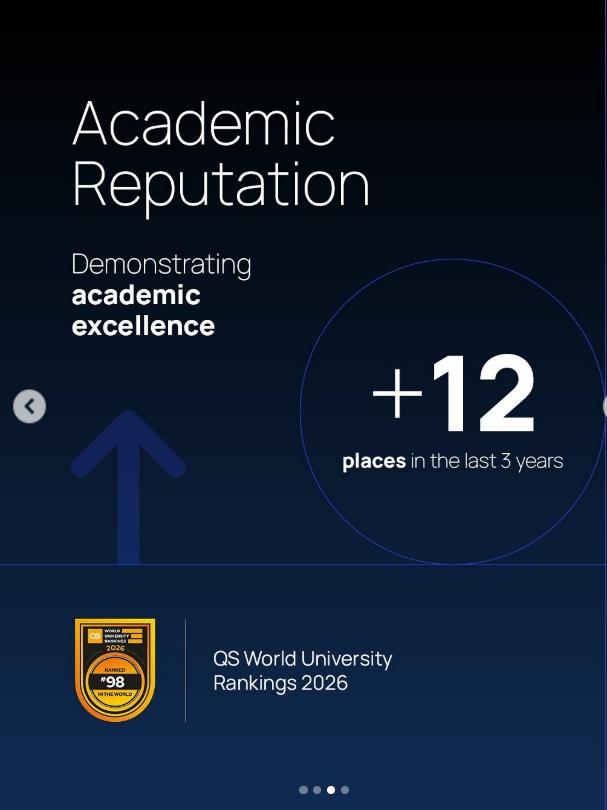 这是米兰理工大学持续攀登国际卓越之巅的历程的体现。米兰理工大学的崛起堪称意大利大学十年间持续进步的典范:从 2016 年QS排名第 187 位跃升至 2026 年的第 98 位,提升 89 位,其中仅近三年就提升 41 位。米兰理工大学校长多纳泰拉教授指出: