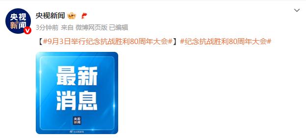 9月3日上午,中共中央总书记、国家主席、中央军委主席习近平将出席纪念中国人民抗日战争暨世界反法西斯战争胜利80周年大会并发表重要讲话。