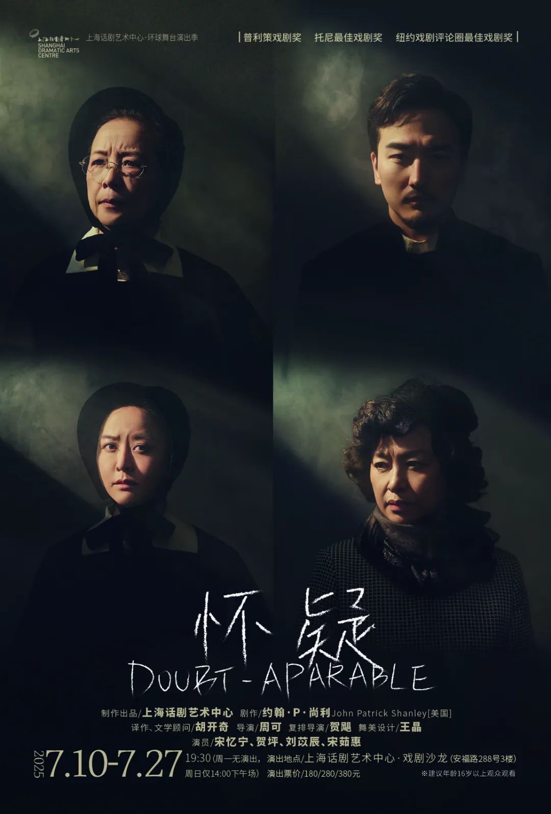2025年7月10日-27日《怀疑》将再度上演于上海话剧艺术中心·戏剧沙龙,主演宋忆宁、贺坪、刘苡辰、宋茹惠饰演的角色性格迥异,无论“怀疑”还是“相信”,都坚定不移地表达着各自不同的立场,一场激辩将在复排导演贺飓的执导下呈现在观众面前。