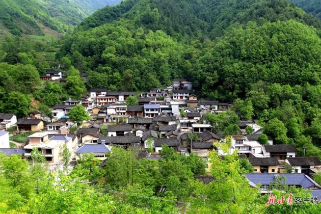 绿树掩映中的康县长坝镇山根村。(康县县委宣传部供图)如果说,陇南绵延不绝的山川像一条条绿丝带,那么2100多个美丽乡村就是串在丝带上的明珠。