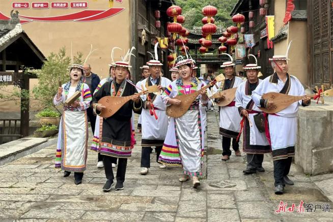文县古韵琵琶队以嘹亮的歌声表达对游客最热烈的欢迎。(新甘肃·甘肃日报记者 王煜宇摄)