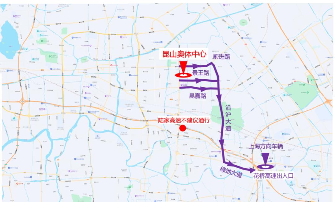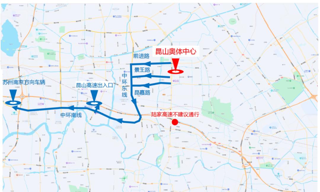 散场时,因东城大道沪宁高速陆家收费站车多缓行,需要通过高速离昆的自驾车辆,建议选择沪宁高速花桥收费站、昆山收费站和常嘉高速巴城收费站等绕行。