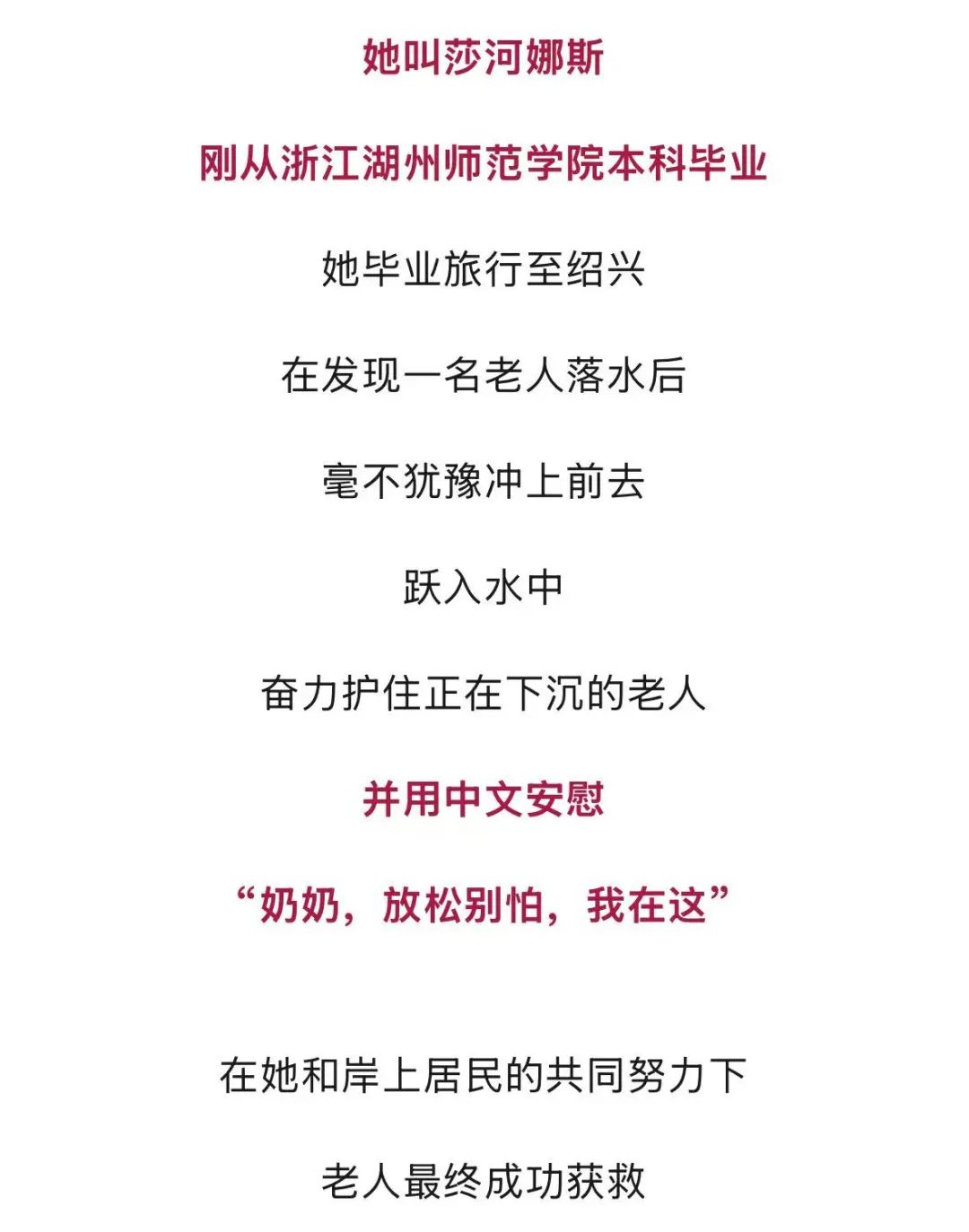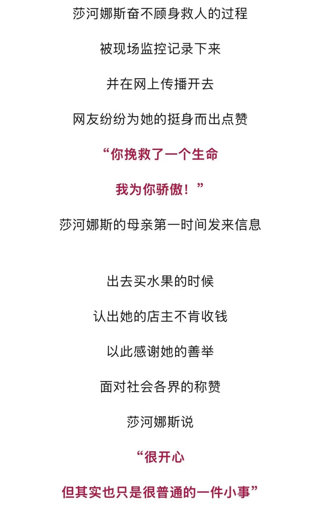 6月23日,莎河娜斯展示社交平台对她救助落水老人的报道