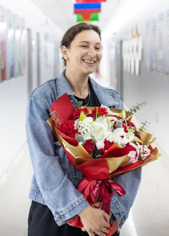 6月24日,莎河娜斯收到绍兴市有关方面送来的鲜花