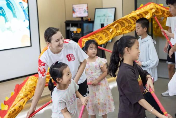 2024年7月8日,莎河娜斯在湖州市一个公益暑期班教小朋友舞龙