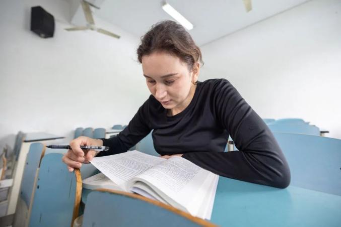 6月24日,莎河娜斯在教室备考莎河娜斯报考了本校研究生