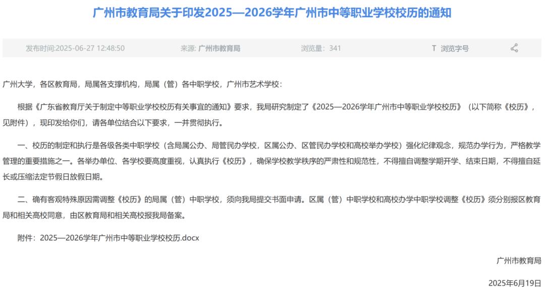 《2025—2026学年广州市中等职业学校校历》