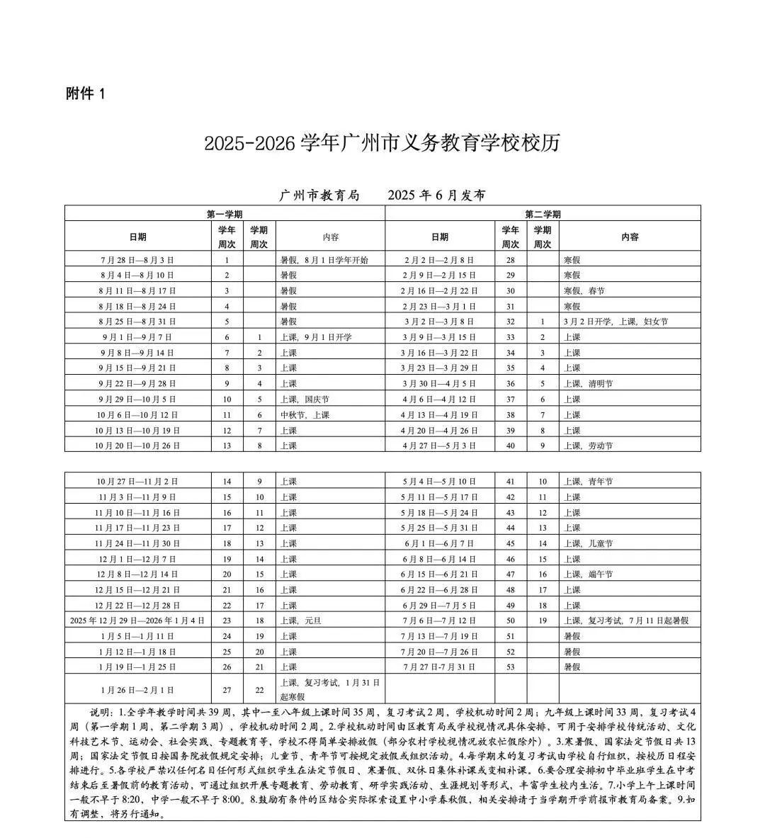 《2025—2026学年广州市义务教育学校校历》