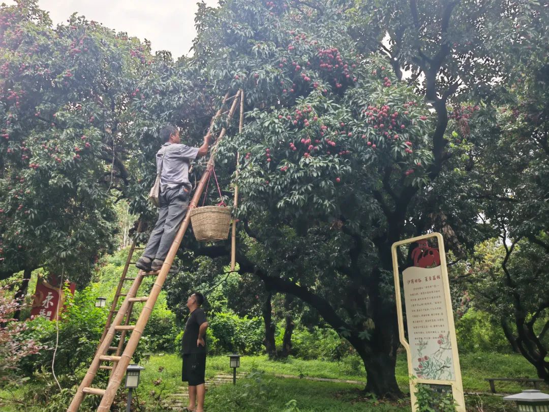 村内种植的品种包括妃子笑、桂味、蜜糖糍、黑叶等