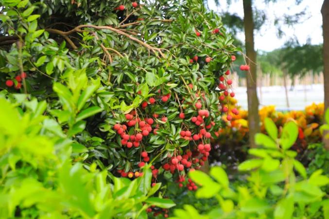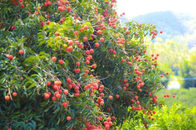 荔枝宛如一颗颗红宝石点缀在瑞绿之间