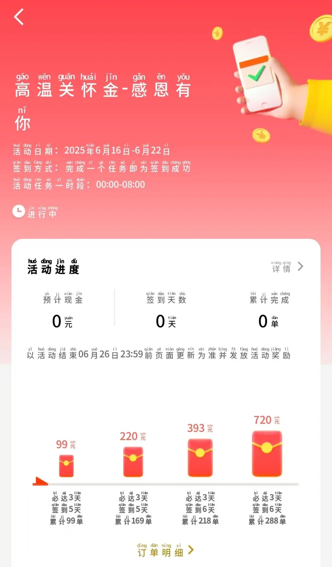 “真的太诱人了。”李乐向《IT时报》记者示意了多张活动截图,清晰地显示了各个梯度的奖励,其中一张是6月16日至6月22日的活动内容:必达3天,签到5天,累计完成99单配送可获得99元的奖励,而完成169单能得到220元;在必达天数一样的情况下,当签到6天完成218单后,可以获得393元,而完成288单后,便能得到720元。