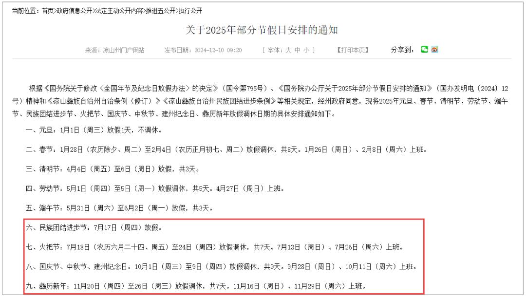 《关于2025年部分节假日安排的通知》