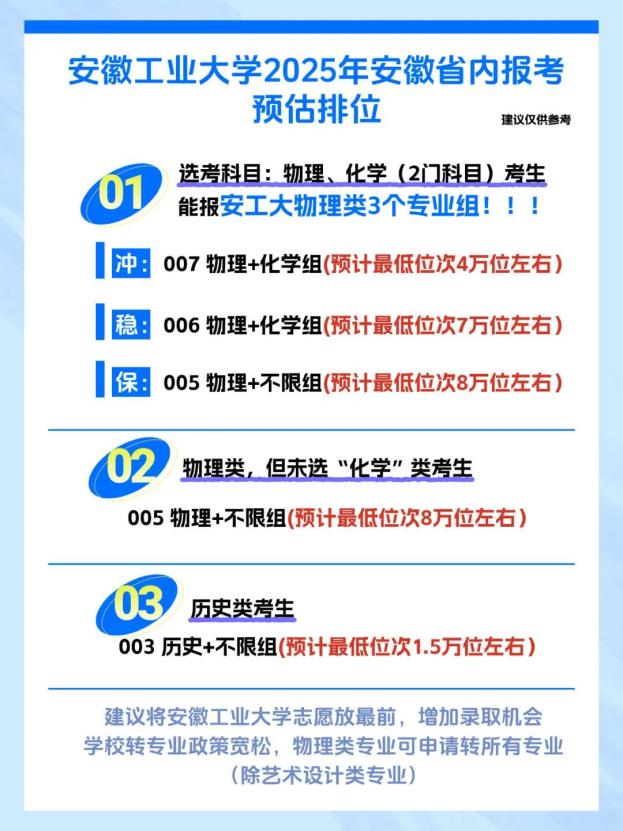 更多招生政策、专业介绍、历年分数等权威信息,请持续关注安徽工业大学本科招生官方微信公众号。