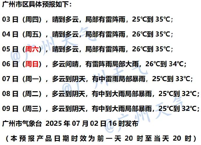 预计7月广州将有3次高温过程,大致出现在7月2日—6日、7月17日—19日、7月24日—26日。
