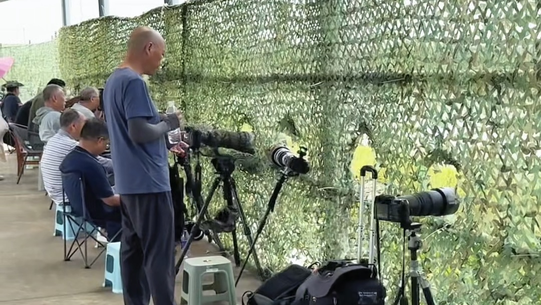 眼下,石湫九荷塘满湖荷花竞相绽放,观鸟爱好者们架起“长枪短炮”静静等待着水雉的出现,当水雉轻盈地从荷叶间探出身影,大家不约而同按下快门,抓拍它们最优雅的瞬间。