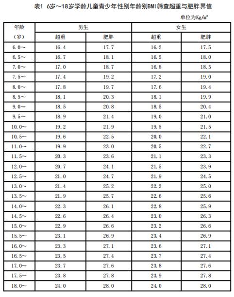 BMI计算:BMI=体重(Kg)/身高(m)⊃2;,对照《6岁~18岁学龄儿童青少年性别年龄别BMI筛查超重与肥胖界值》,判断体重是否在正常范围。