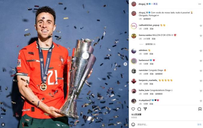 若塔生涯的最后一场比赛定格在了欧国联决赛,他在加时赛第105分钟替补登场,最终葡萄牙点球大战击败西班牙夺冠。