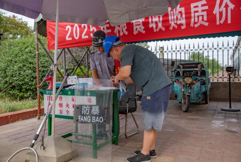 中储粮沈丘直属库门前,售粮农户正在登记信息“托市收购不仅稳住了粮价,更守住了农民‘粮袋子’。”中储粮沈丘直属库仓储科科长代子尚介绍,全县已设立夏粮收购宣传台,开通农技咨询服务,并组织50余名农技人员深入田间地头,指导农民科学晾晒、安全储粮,确保储粮品质。