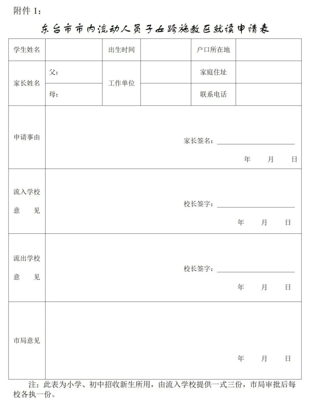 附件:1.东台市市内流动人员子女跨施教区就读申请表
