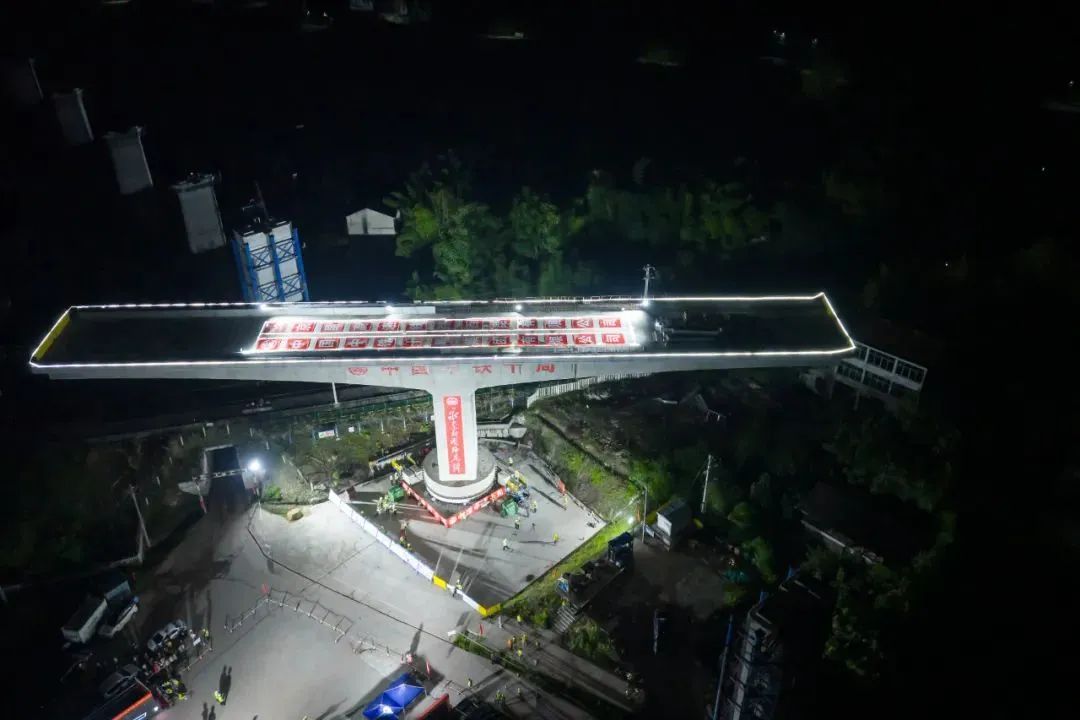 梅花坪临溪河特大桥项目位于四川省广安市境内,全长1458米,其中转体梁采用(2×48)米T构设计,此次转体梁施工上跨既有铁路,转体部分长90米、宽12.6米,重达6000吨,需完成63.68度顺时针转体,施工难度大,安全风险高。“转体施工过程中,我们严格落实临近营业线施工安全管控措施,采用北斗卫星监控系统,对梁体姿态、转体速度、关键应力点进行实时监控,运用高精度测量技术对桥梁姿态进行纠偏预警及动态调整,成功实现了转体梁毫米级精准就位。”中铁十局西渝高铁项目部现场施工负责人聂祥鹏介绍说。