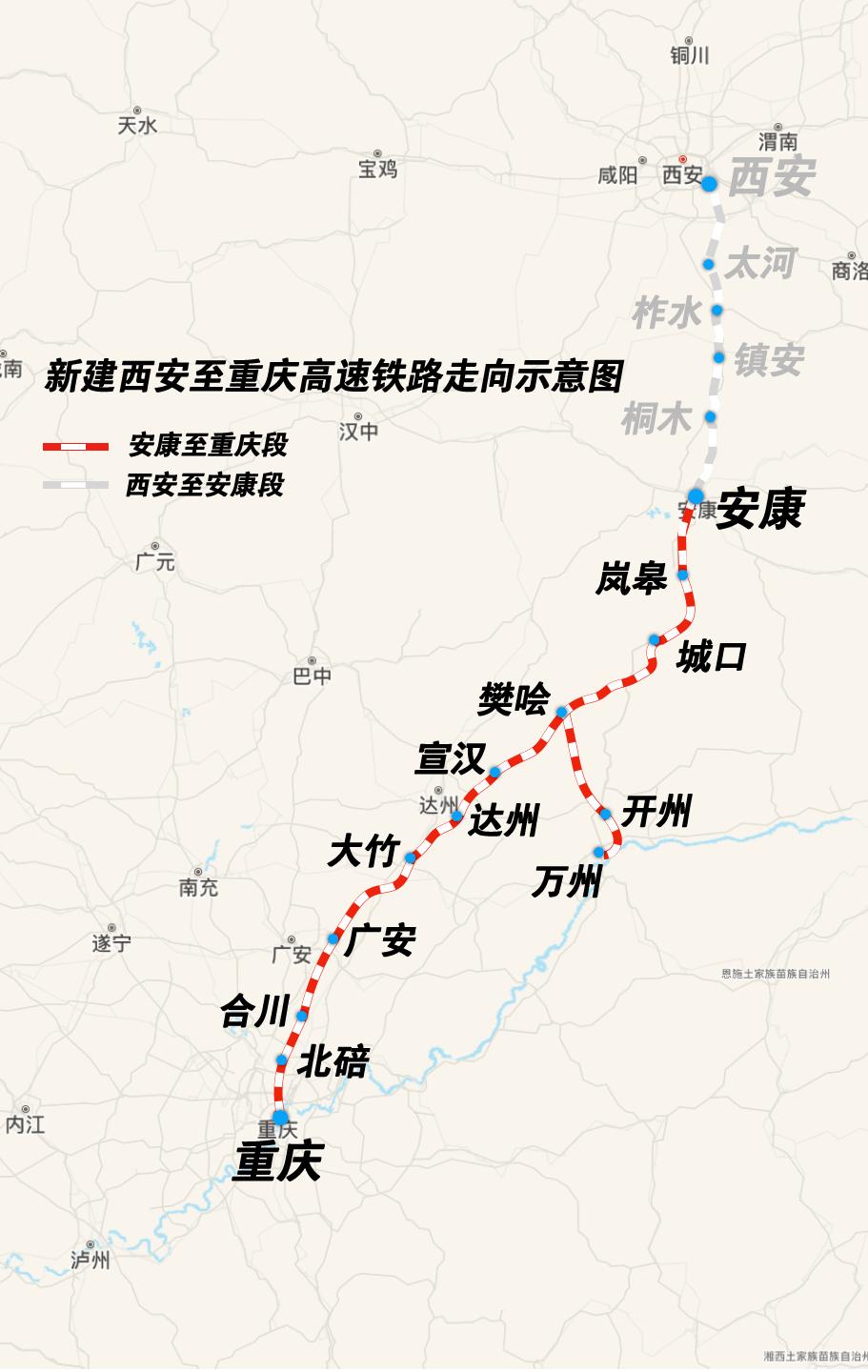 西渝高铁康渝段正线全长478公里,自安康西站起,经陕西省安康市,重庆市城口县,四川省达州市、广安市,重庆市合川区、北碚区,引入重庆枢纽重庆西站。项目建成通车后,对促进成渝地区双城经济圈与关中平原城市群之间的联系,便利沿线群众出行,助力城乡融合和区域协调发展,带动沿线城市经济社会发展具有重要意义。原标题:《成渝中线高铁、西渝高铁又有新进展》