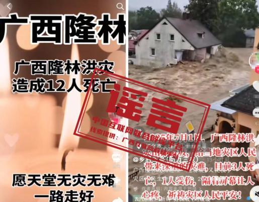 辟 谣 网传“广西隆林洪灾造成12人死亡”“广西隆林洪灾山体滑坡目前3人死亡”均为不实信息
