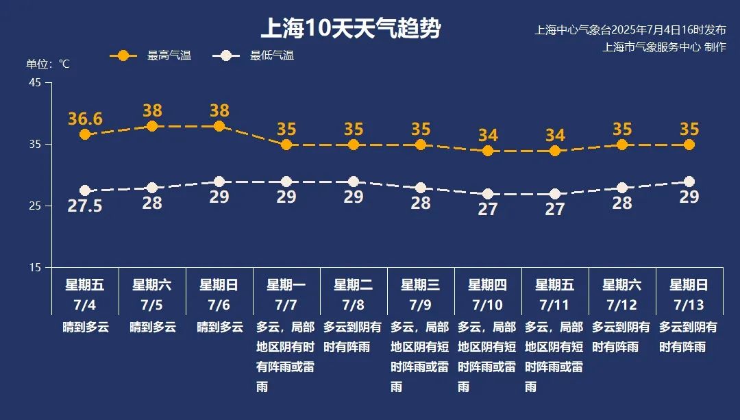 下周本市高温缓解有望。一方面副热带高压北抬不再牢牢控制申城,另一方面热带对流系统变得活跃。在巴士海峡附近已有热带低压形成,从目前趋势来看,该低压或将加强为今年第4号台风“丹娜丝”,未来可能影响我国东南沿海,路径不确定性仍较大,需持续关注。