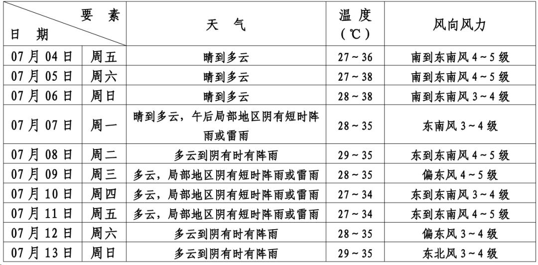 明日具体天气预报:晴到多云。南到东南风4—5级,沿江沿海地区阵风有6级。明天最高气温38℃,最低气温28℃。相对湿度40%—85%。