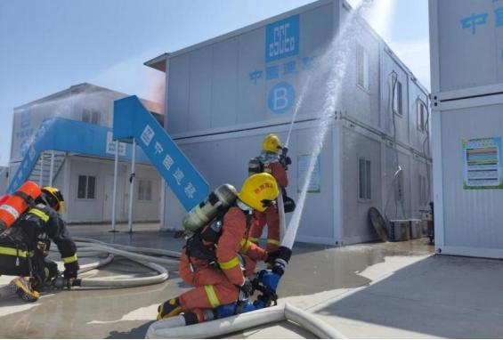 实战演练,增强应急处置能力。中国航空工业集团机载民机产业基地建设现场联合中国航空工业集团规划总院开展消防救援应急演练。