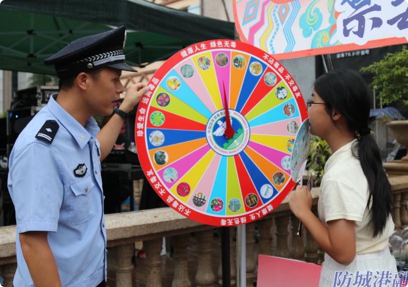 禁毒常识综合互动区设置了“一锤定音”“禁毒大转盘”等趣味游戏,其寓教于乐的形式让群众在欢声笑语中巩固禁毒知识。