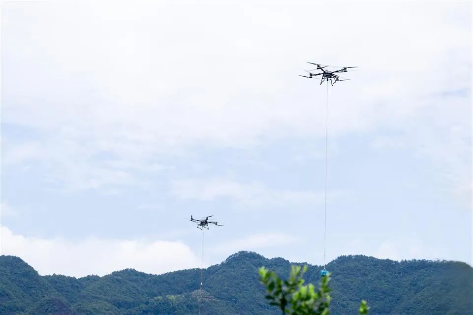 不仅有轨道“小火车”,文成杨梅还坐上了“飞的”以“飞行模式”抢鲜出山!在珊溪镇文成望湖农业专业合作社的杨梅种植基地,无人机群化身“空中快递员”,随着螺旋桨的轰鸣声渐起,一架大疆FC30型号无人机和两架大疆T100型号无人机轻盈起飞,果农们刚采摘的杨梅被无人机带着,掠过山林,仅3分钟便将杨梅从山林中运输至望湖农业专业合作社运输点。合作社负责人吴士荣算过一笔账,以前每天动员数十个工人,每人负重50斤爬半小时,现在无人机日均运输量抵得上百余人次人工搬运,且杨梅损耗从8%降到3%以内。“无人机不仅快,还稳!杨梅怕磕碰,过去挑担颠簸掉果严重,现在‘空中吊篮’全程平稳,精品果比例提高两成。”他边说边拿起杨梅展示,颗粒饱满的果肉上连凹痕都完好如初。