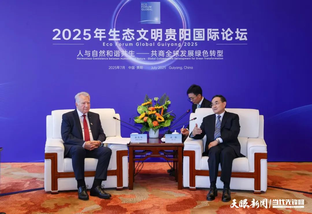7月4日,省委书记徐麟在贵阳会见来黔出席2025年生态文明贵阳国际论坛的匈牙利国会副主席雅高布·伊什特万一行。省领导郭锡文、张敬平参加。