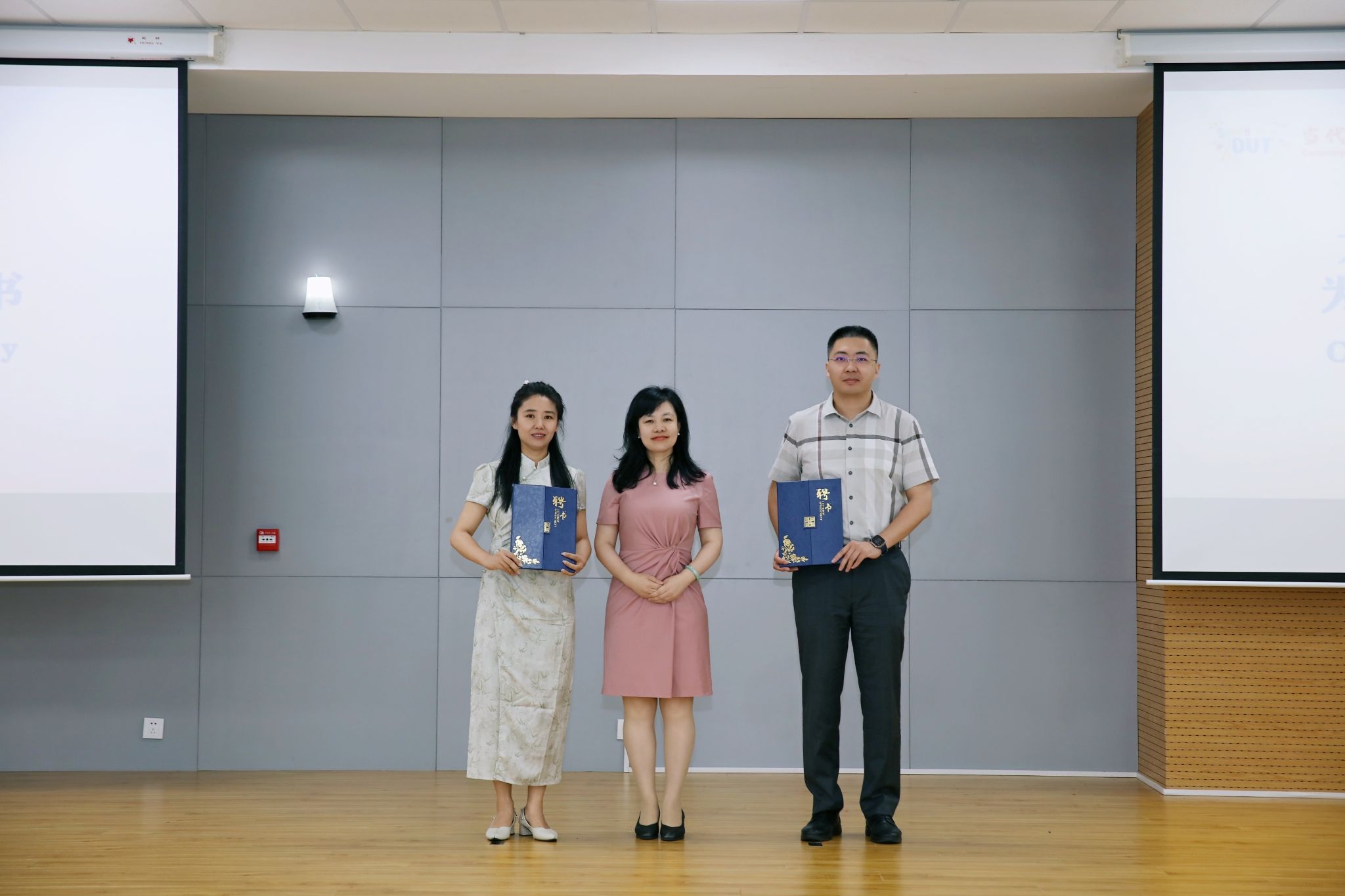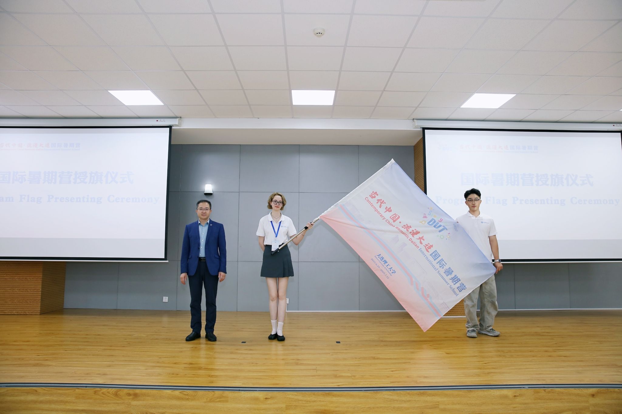 成英俊为授课教师代表颁发证书,国际教育学院院长段玉平向营员代表授予暑期营营旗。