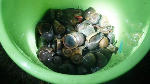 地笼捕获的福寿螺。李子云 摄