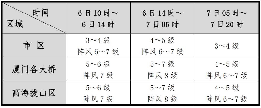 7月6日14时至7日14时,南海东部和南部的部分海域、台湾海峡、台湾以东洋面、巴士海峡、东海西南部及钓鱼岛附近海域、广东东部沿海、福建沿海、浙江沿海、台湾岛沿海将有6~8级大风,阵风9~10级。