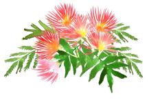 合欢的花是由无数花丝组成的绒球,自上而下由粉变白,柔柔袅袅。李渔在《闲情偶寄》中称“合欢蠲忿”,意思是说这种花可以消除人的愤怒,也许是因为合欢轻柔、可爱,愤怒的人见了也会顿时心软下来。合欢的叶子由许多小叶组成,排列整齐,两两对生,一片大叶上能有十到三十对小叶。白天叶片舒展,到了晚上或是阴天时,每对小叶就合拢在一起,由此得名“合欢”“夜合”。