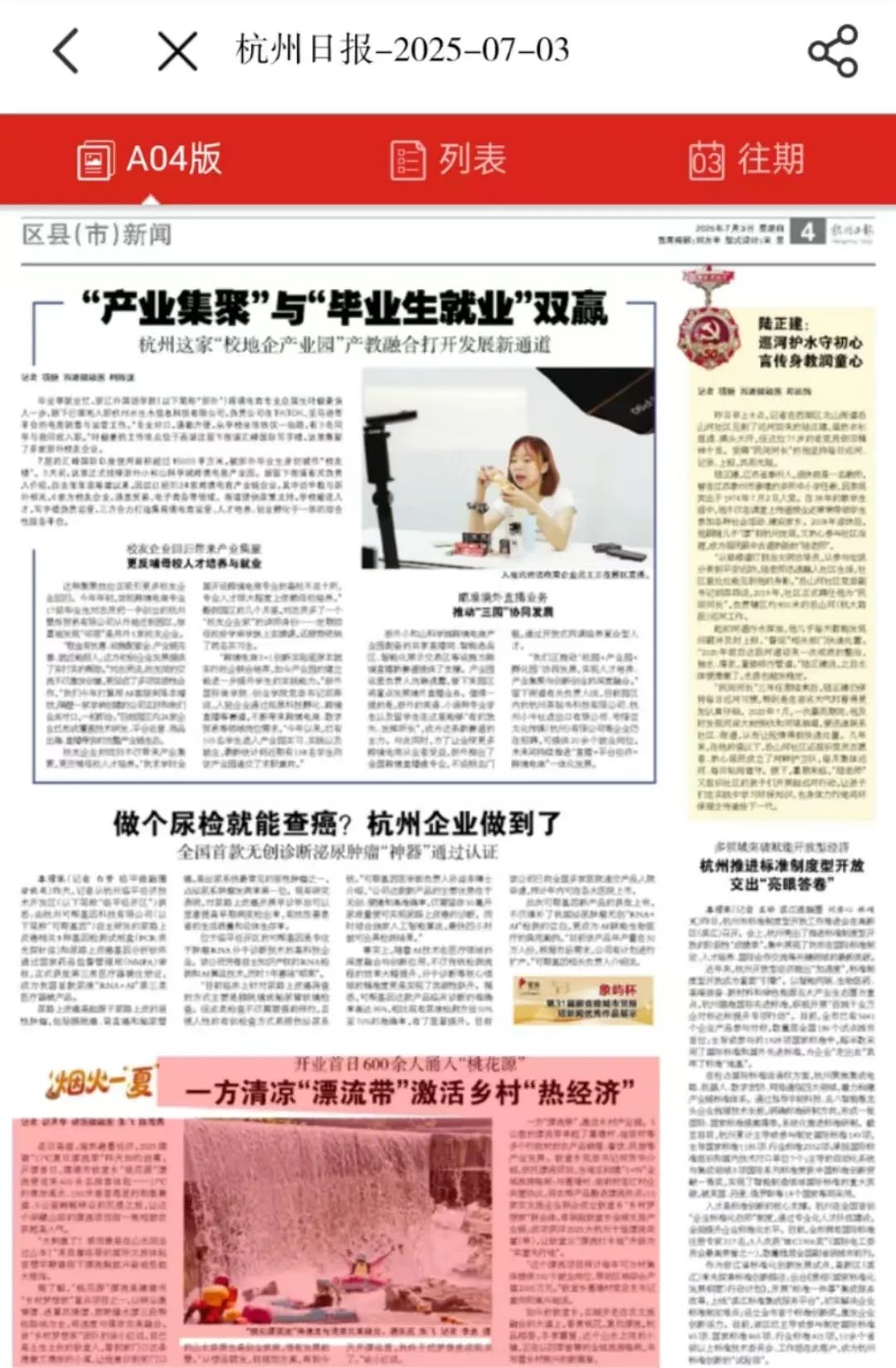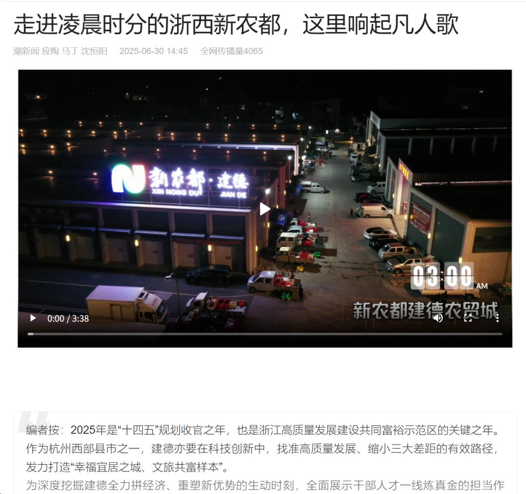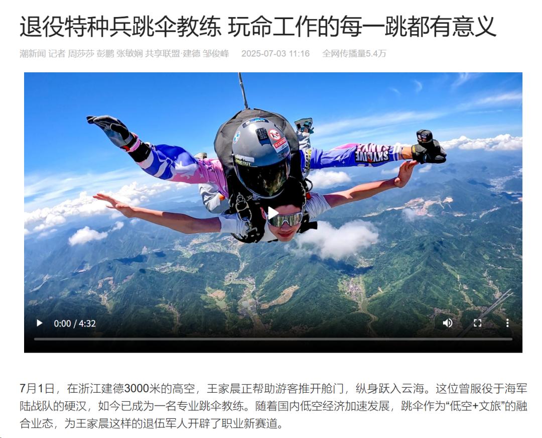 6月30日-7月3日,潮新闻客户端聚焦建德新农都农产品批发市场的深夜灯火中,一群年轻摊贩用辛勤劳作演绎着现实版的《凡人歌》;报道退伍军人王家晨转型为高空跳伞教练,以这份踏实事业实现可观收入。