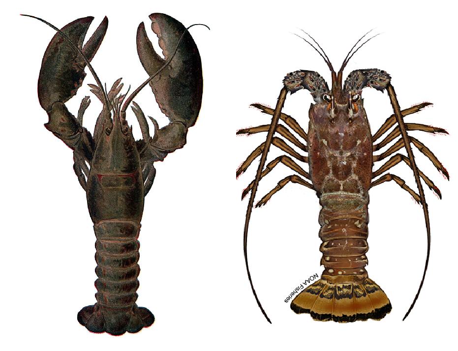 海鳌虾科(左)和龙虾科(右)的区别。图片来源:wikimedia commons; NOAA