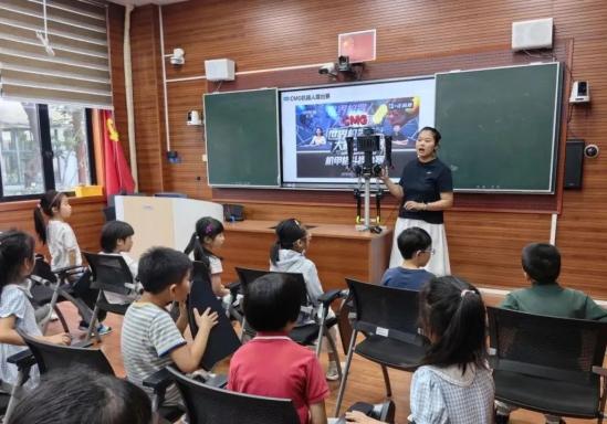 与此同时,在天山路街道的办班点民办新世纪中学,三个班级的同学集中在大礼堂,听“从考古到AI”的系列讲座。上海博物馆考古研究部副研究馆员戎静侃、上海市机械工程学会青年志愿者蔡万利作为辖区团建联盟的青年志愿者接连登场。其中,戎静侃带来了以“认识考古——关于人的故事”为题的讲演,引导孩子们理解考古是科学,考古的意义是什么,以及如何辨别考古和盗墓;蔡万利则把看起来高深的AI主题课程变成了一场充满互动感的游戏,通过“你画我猜”游戏等互动环节鼓励孩子们思考,意识到想让AI准确识别图像,就必须抓住对象的关键特征并加以描述。