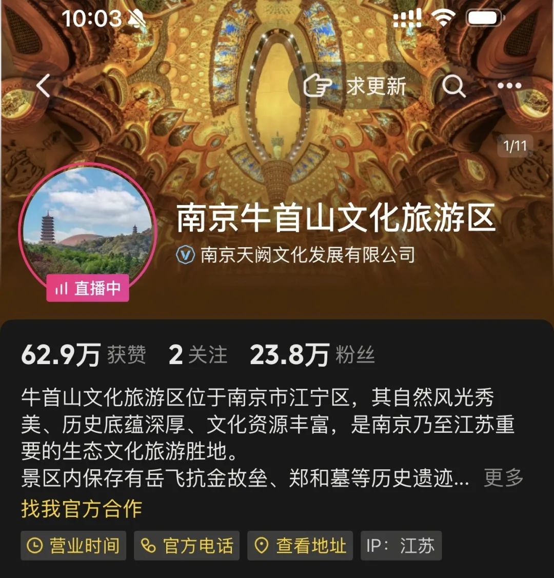 抖音搜索“南京牛首山文化旅游区”直播间